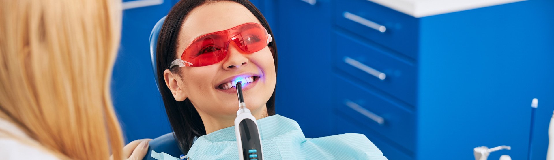 Bu beyazlatma yöntemi; diş hekimi tarafından klinikte uygulanır. Dişe sürülen beyazlatıcı maddenin üzerine beyazlatmayı hızlandıran bir ışın uygulanır. Kullanılan beyazlatma jelleri genelikle karbonitperoksit ihtiva eder.